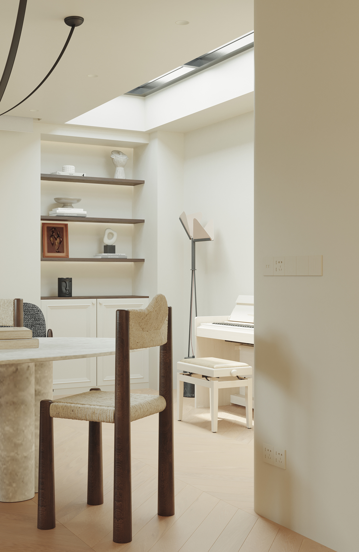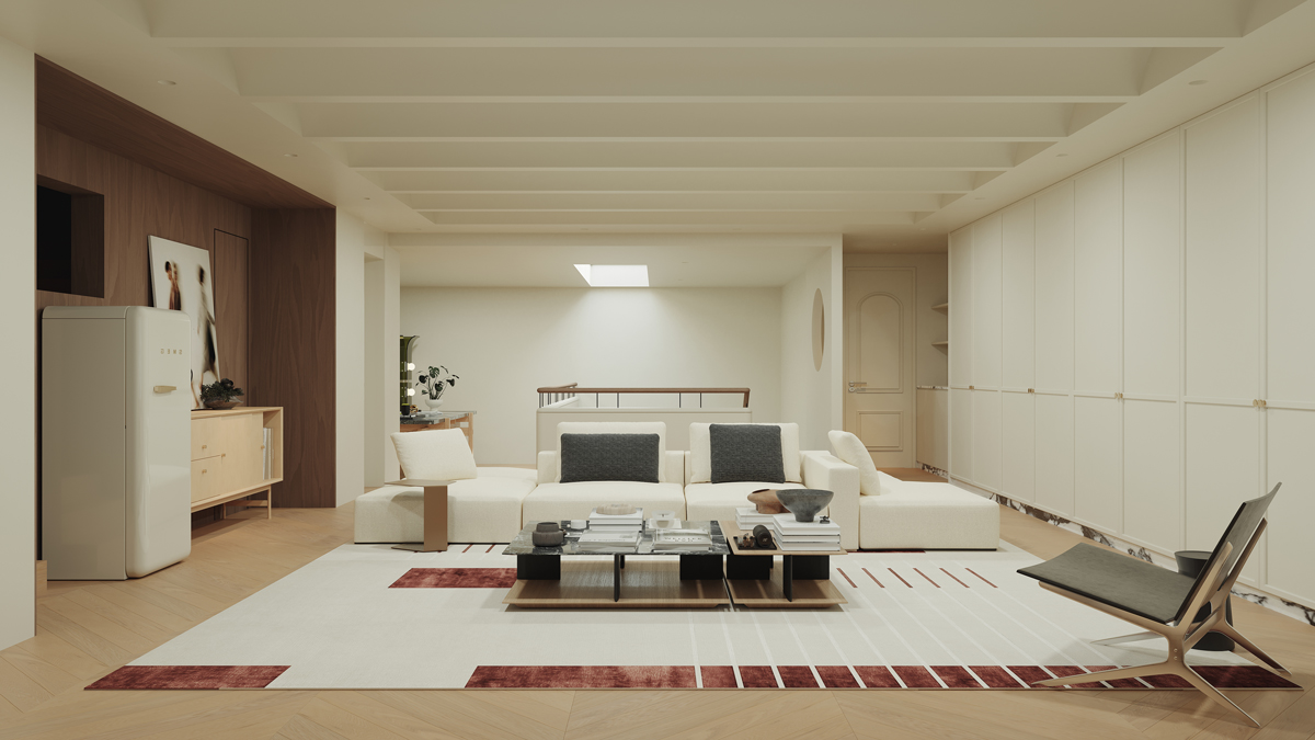在不影响顶面采光的前提下,搭建出书房,和影音室相连接,增加了空间的互动性。