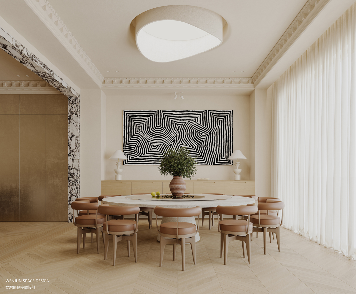 本案是一处私宅,地上三层、地下二层带庭院的结构,大宅设计,最本质的还是要立足于业主家庭生活的日常,屋主家里有六个孩子,他们希望通过设计完成一个既有独特感又有生活气的家。