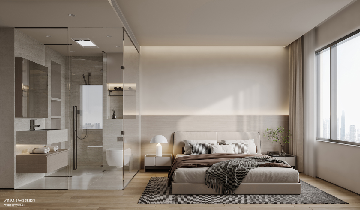全透明长虹玻璃的卫生间,绝佳的采光视野,让卧室的档次直接拉满。