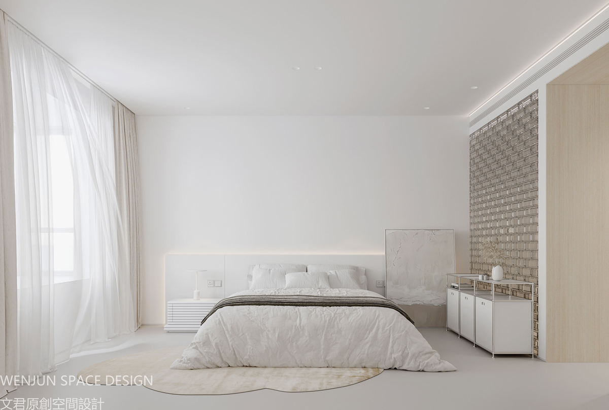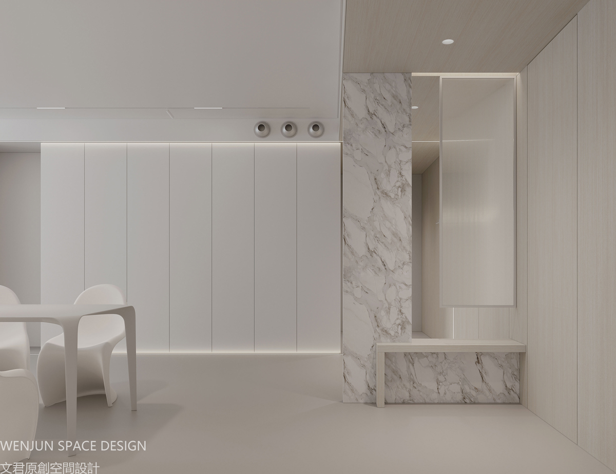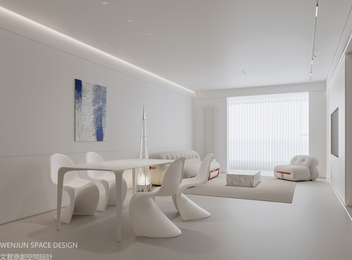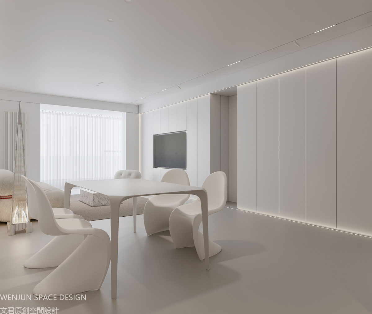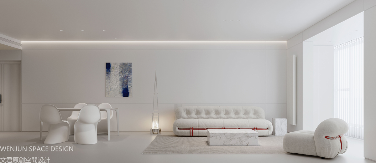 本案极简风,纯白色系空间内局部点缀色彩,创造如画廊般高级家,简约内敛,强调层次质感。