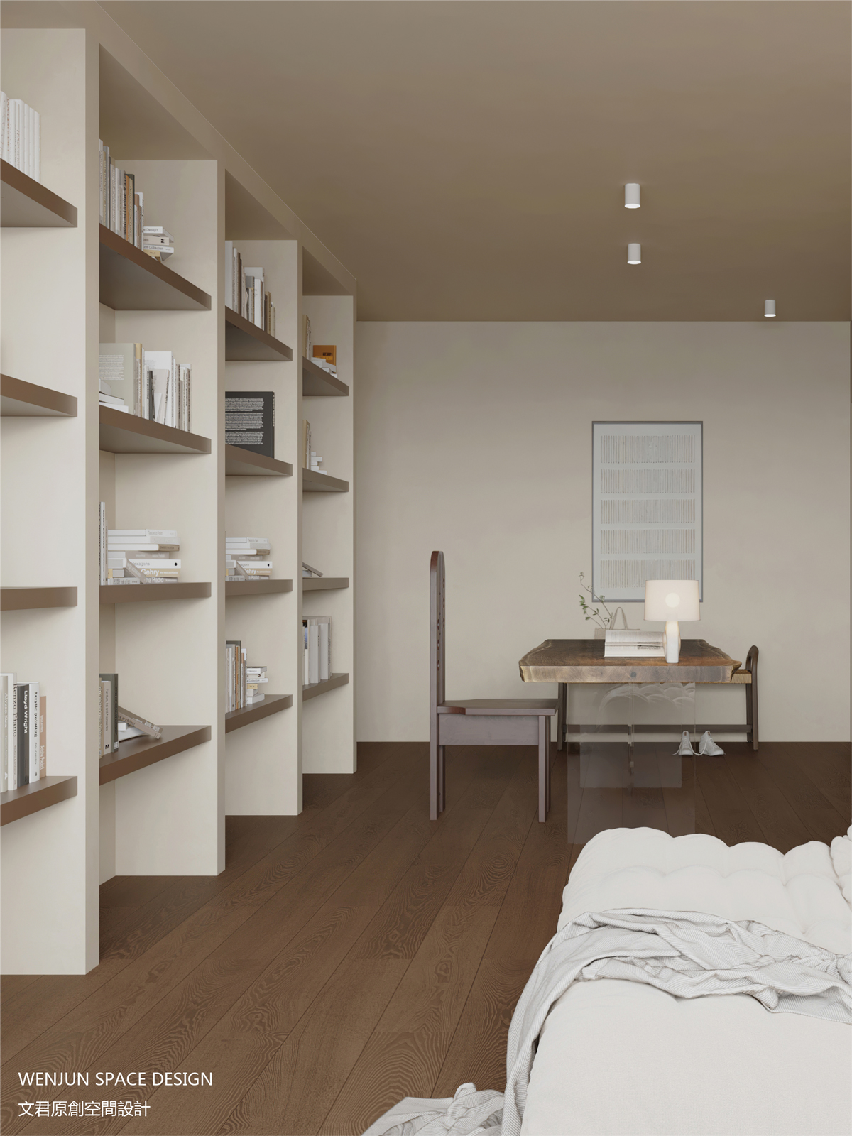 并且,尽可能地做了大量的隐藏柜体和空间留白设计,希望屋主可以用感知、调整来充盈空间,让家随着她的慢生活和旅行保持生长的姿态。