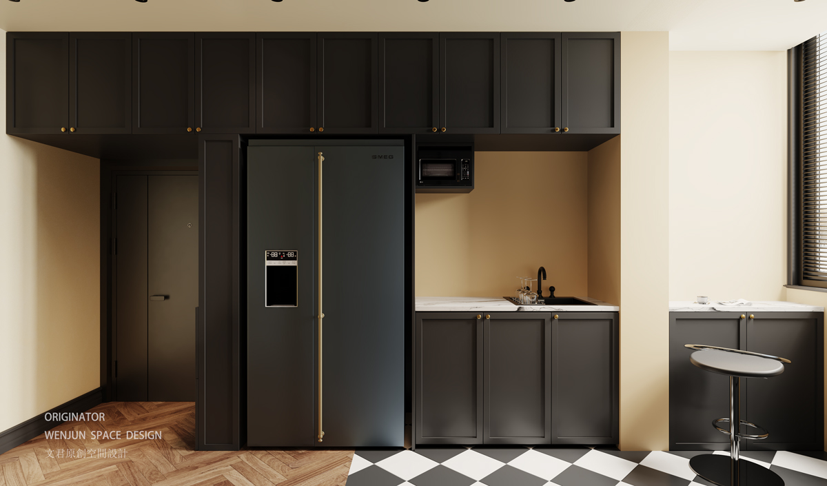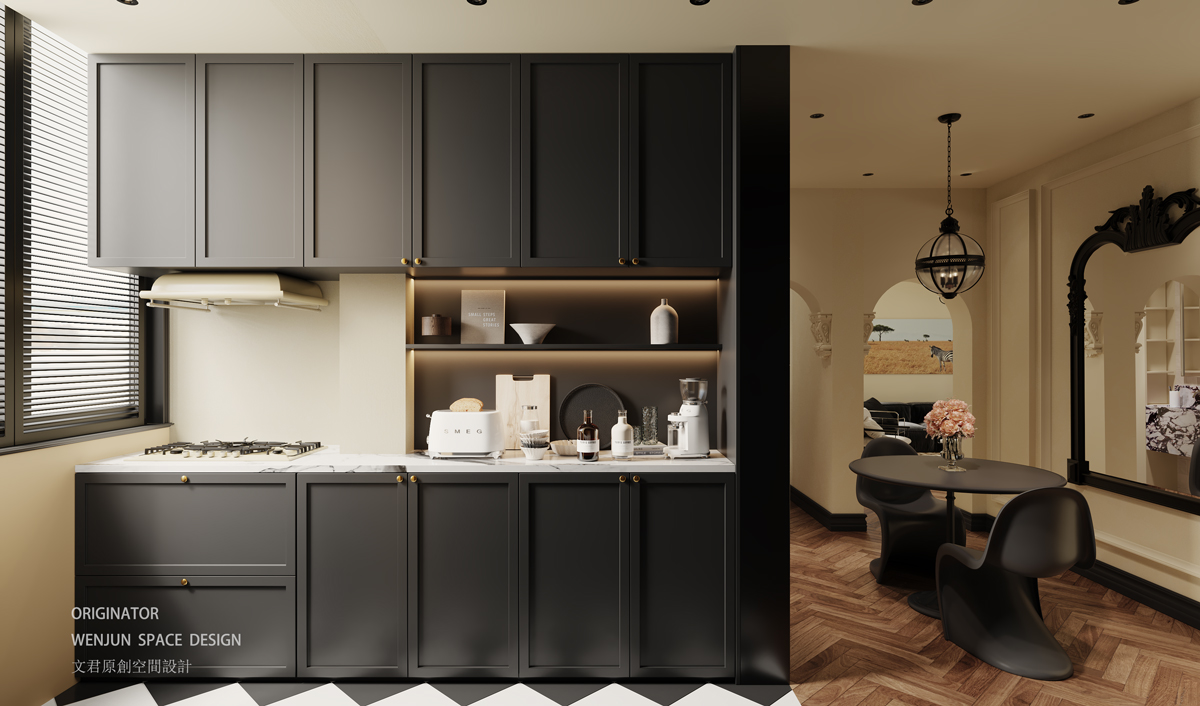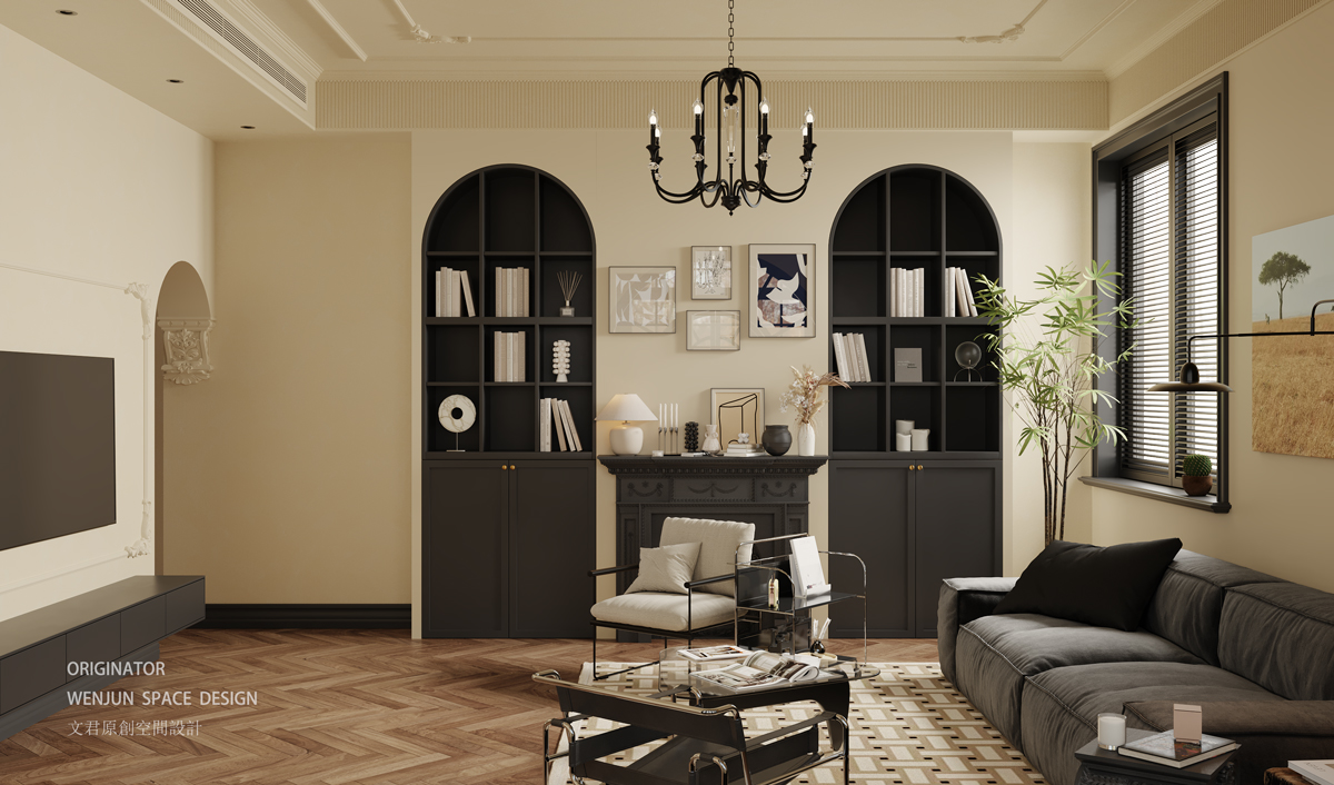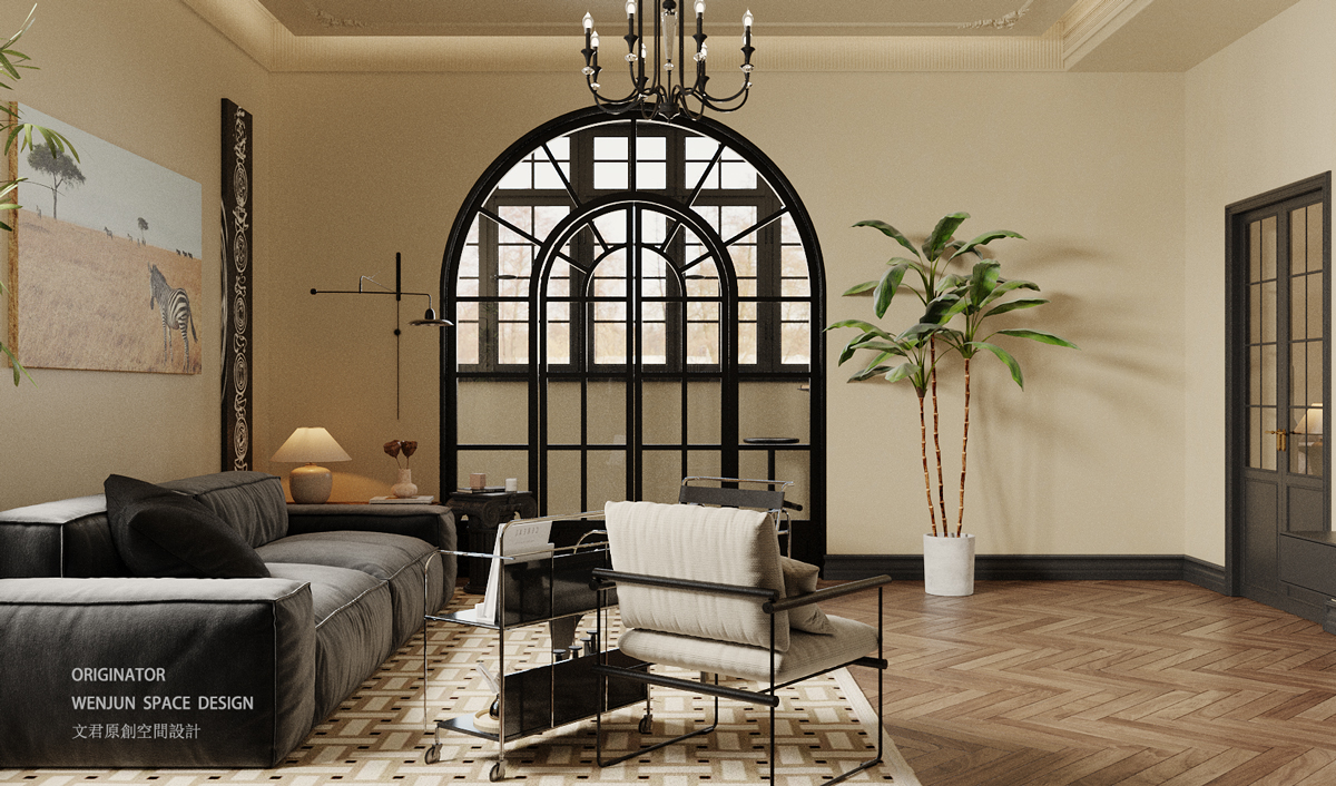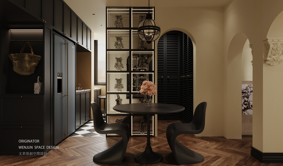 本案的屋主是两位颜值超高,性格酷飒的业主,前期沟通时,他们表示自己喜欢黑色。于是我们在某些点上达成了一致——法式中古风。