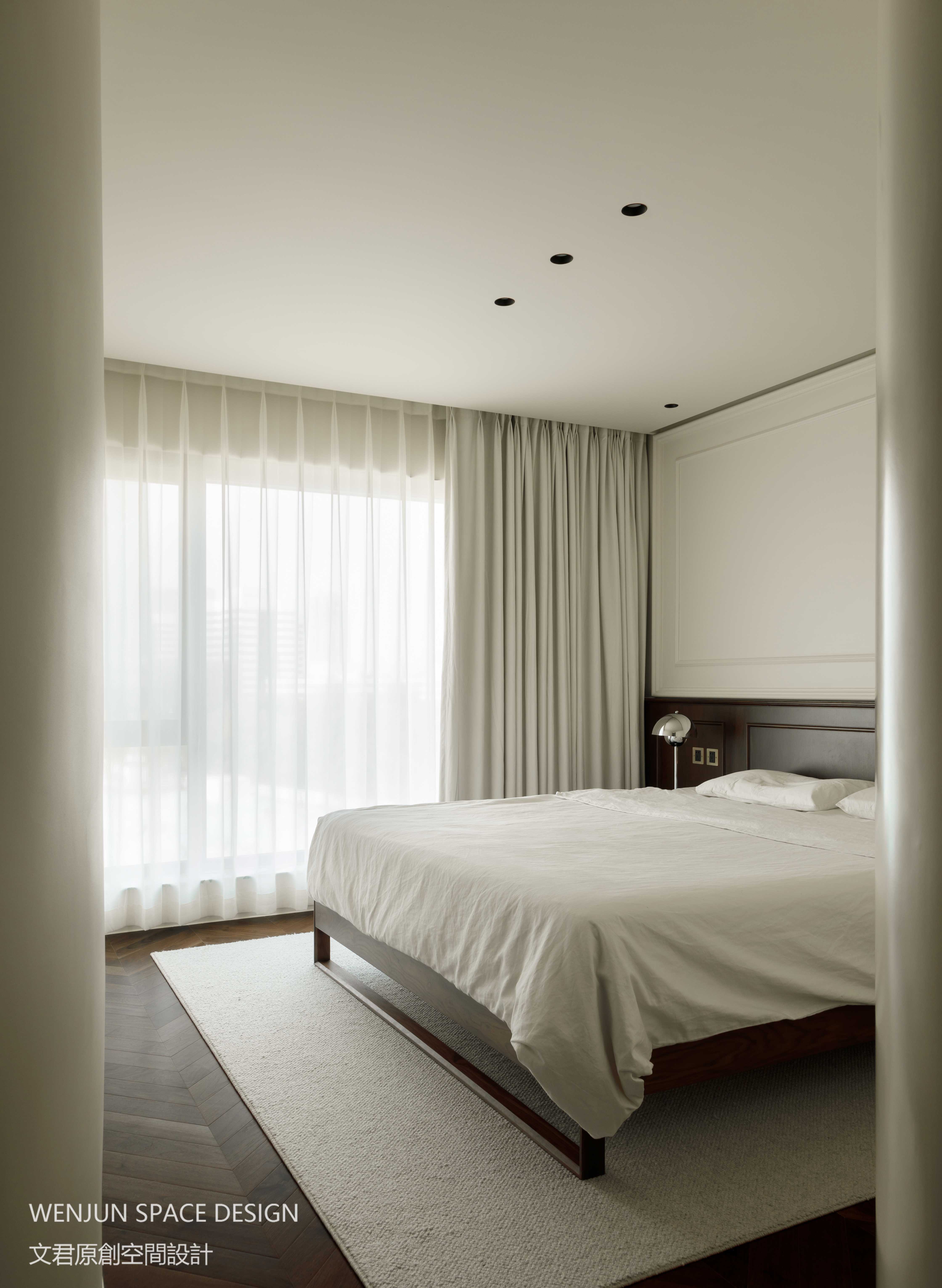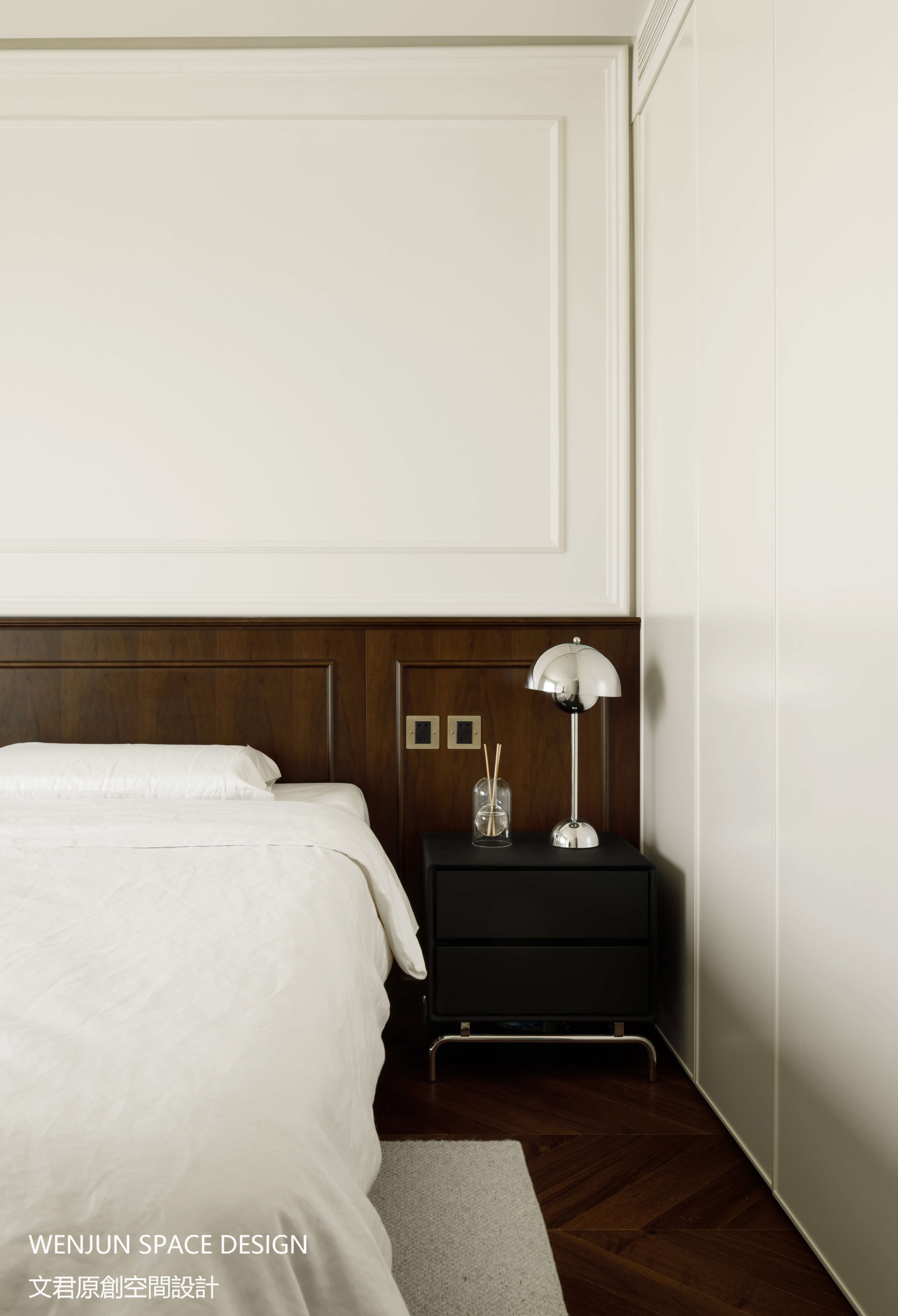 在卧室的色彩使用上,依旧是大面积乳白色+胡桃色,低调包容,简单沉稳。
