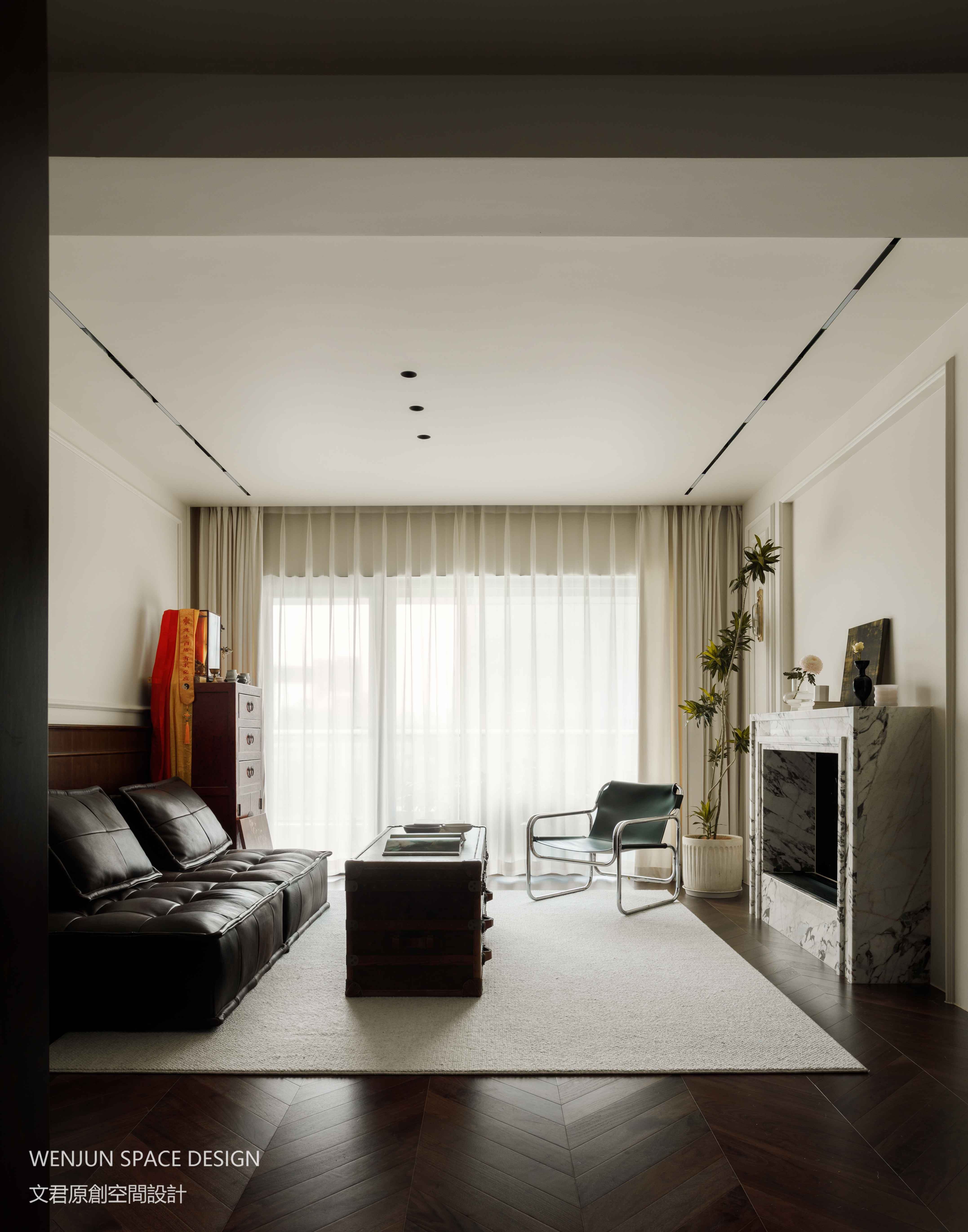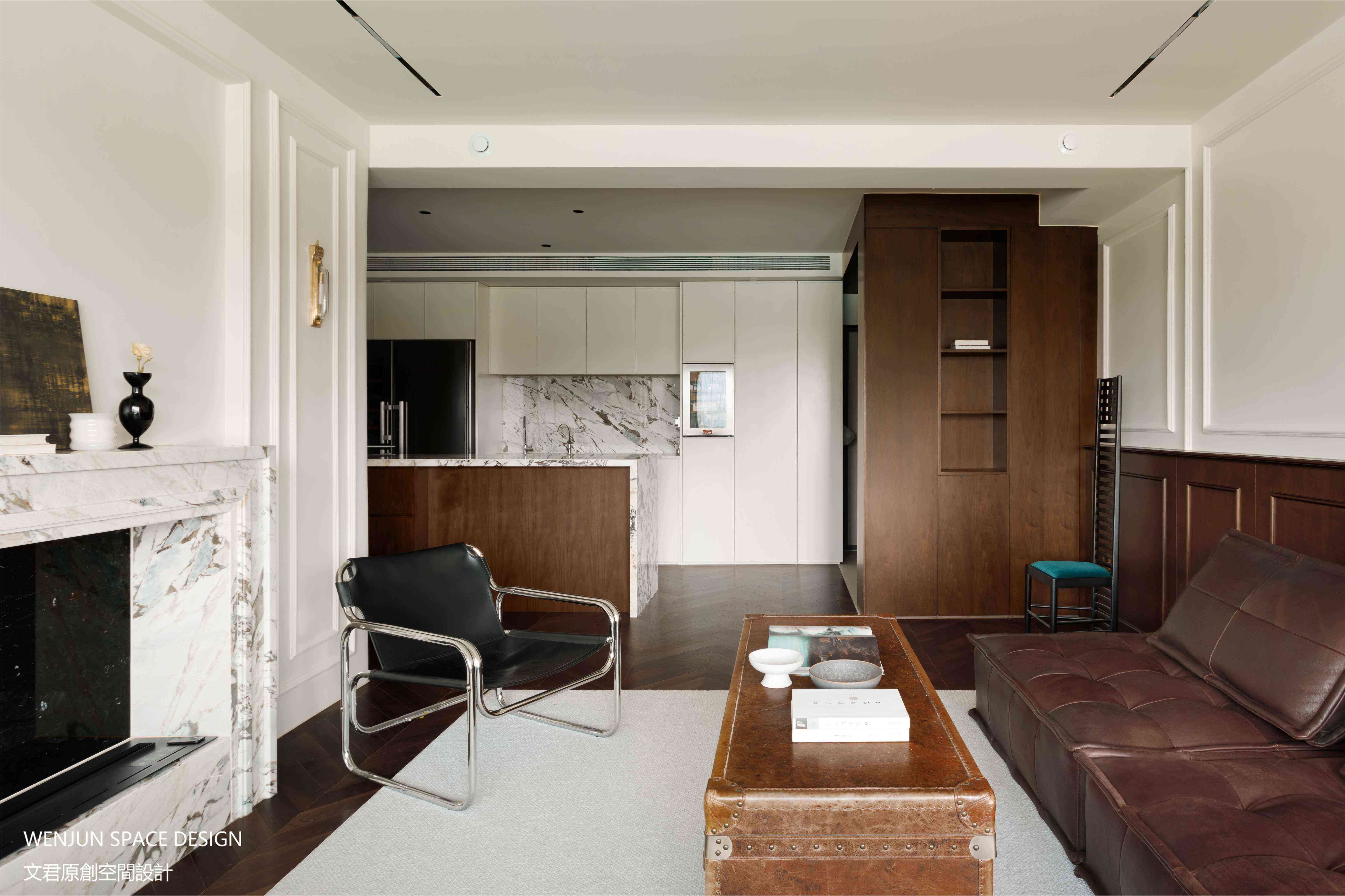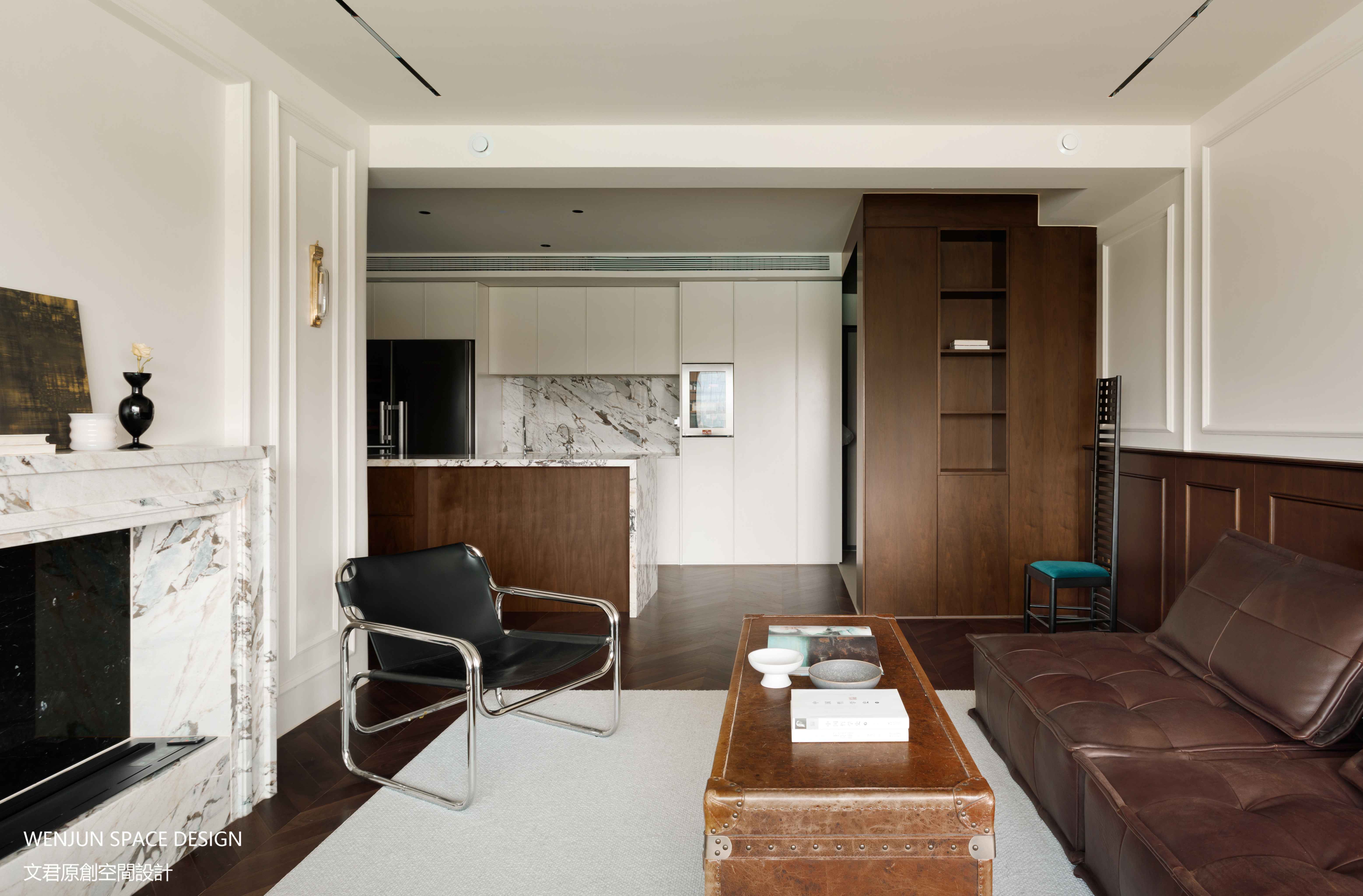 客厅空间在结构上没有大变动,设置壁炉、围合沙发组的场景化。