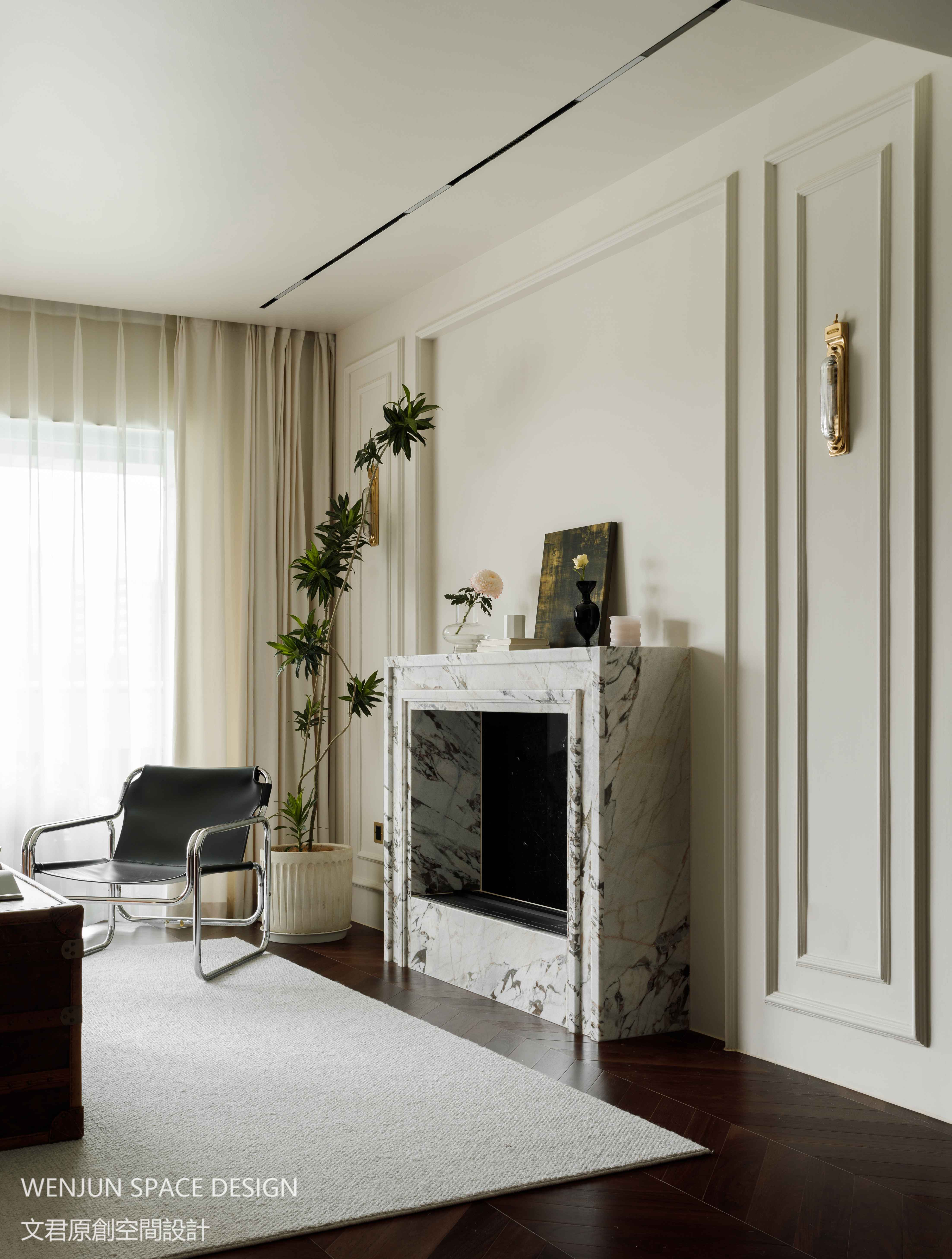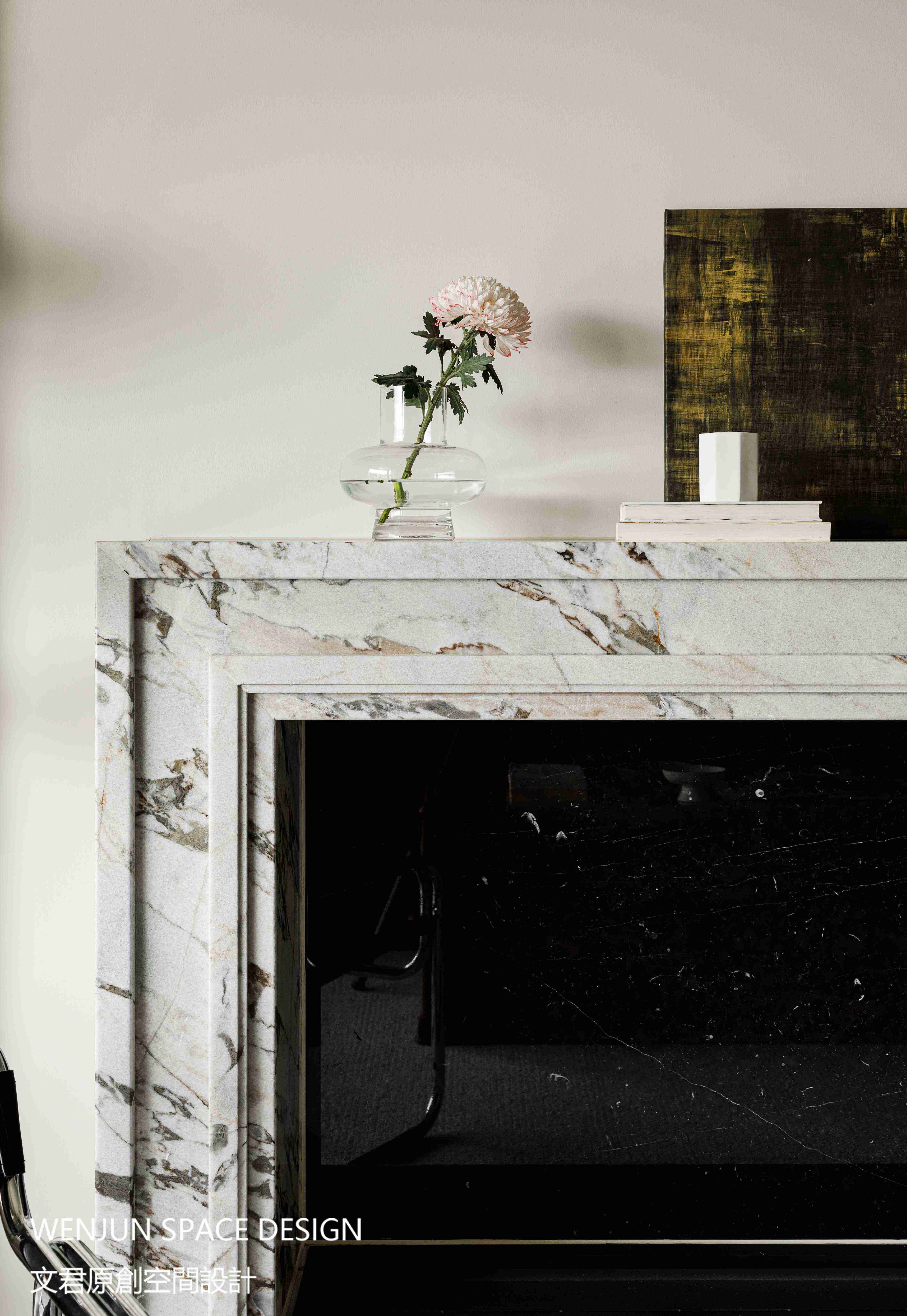在去现代化电子产品设计后,将壁炉作为开启法式风格的一把钥匙,同时兼具音响功能。壁炉上方可以按照主人喜好摆放一些装饰品,在不用来取暖的日子里,让客厅更加有生活气息。