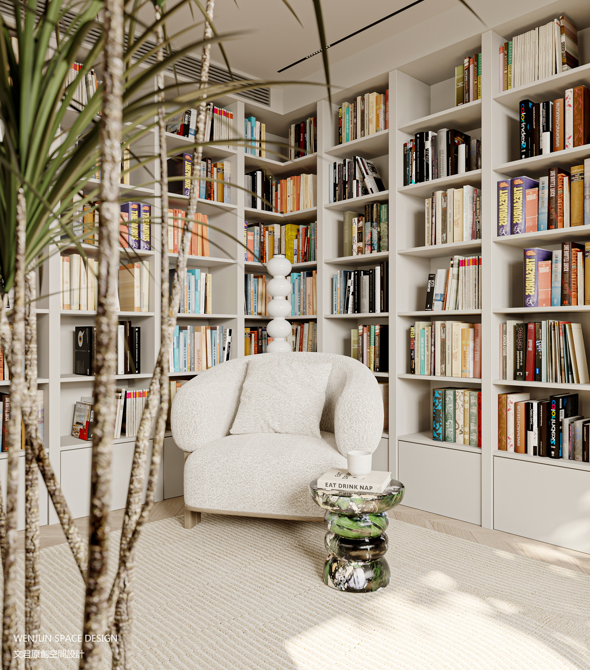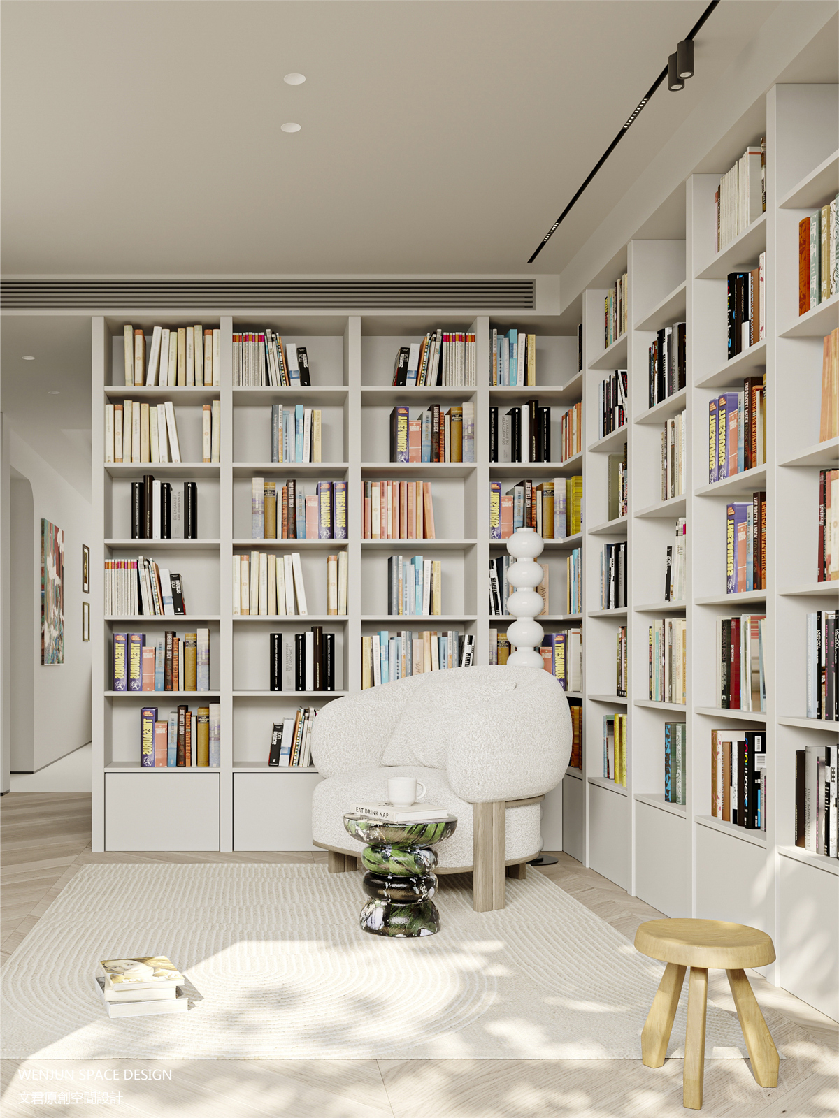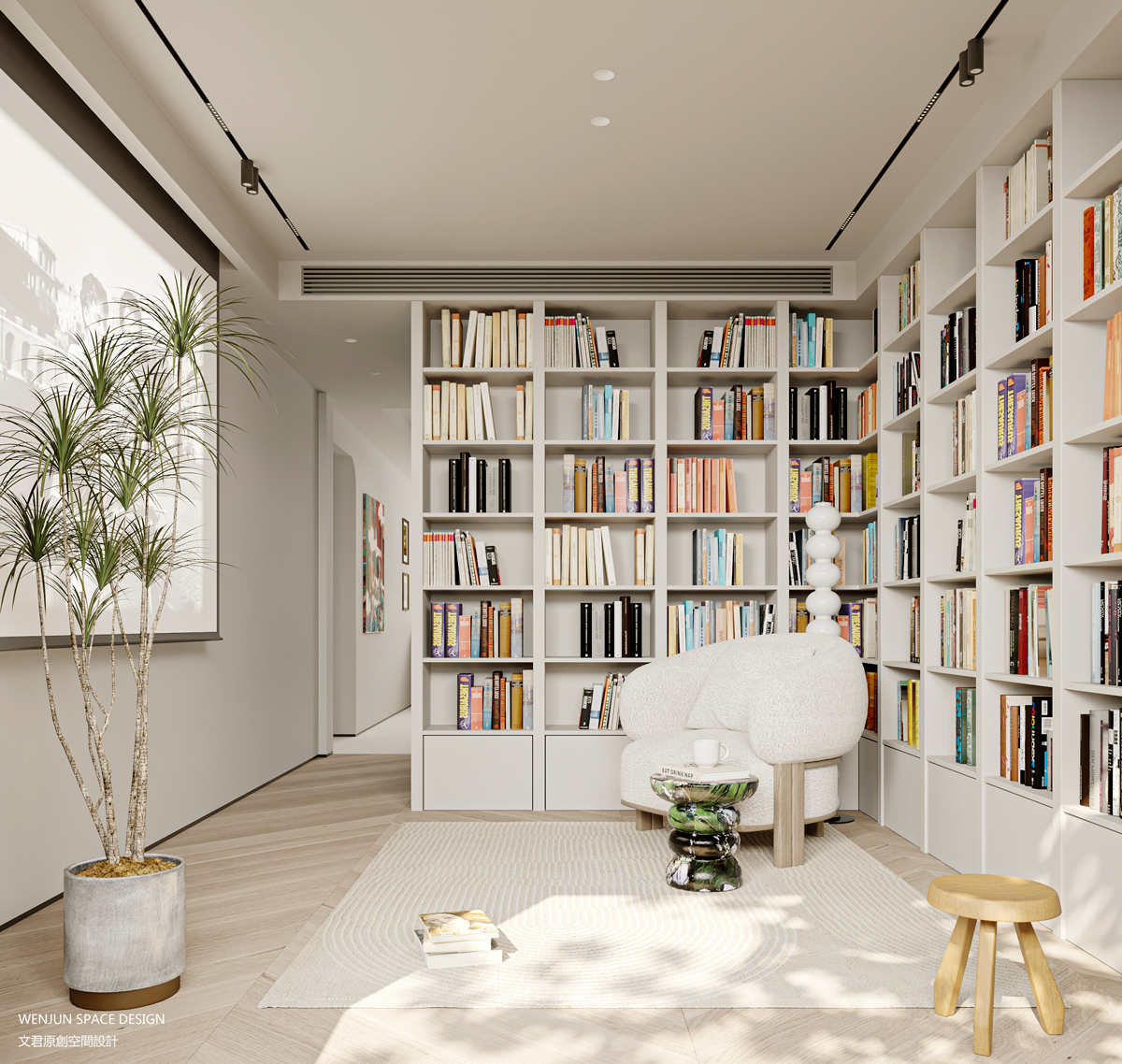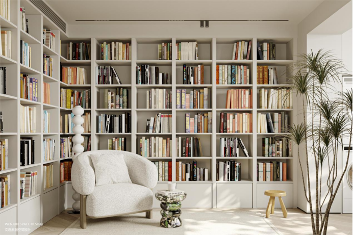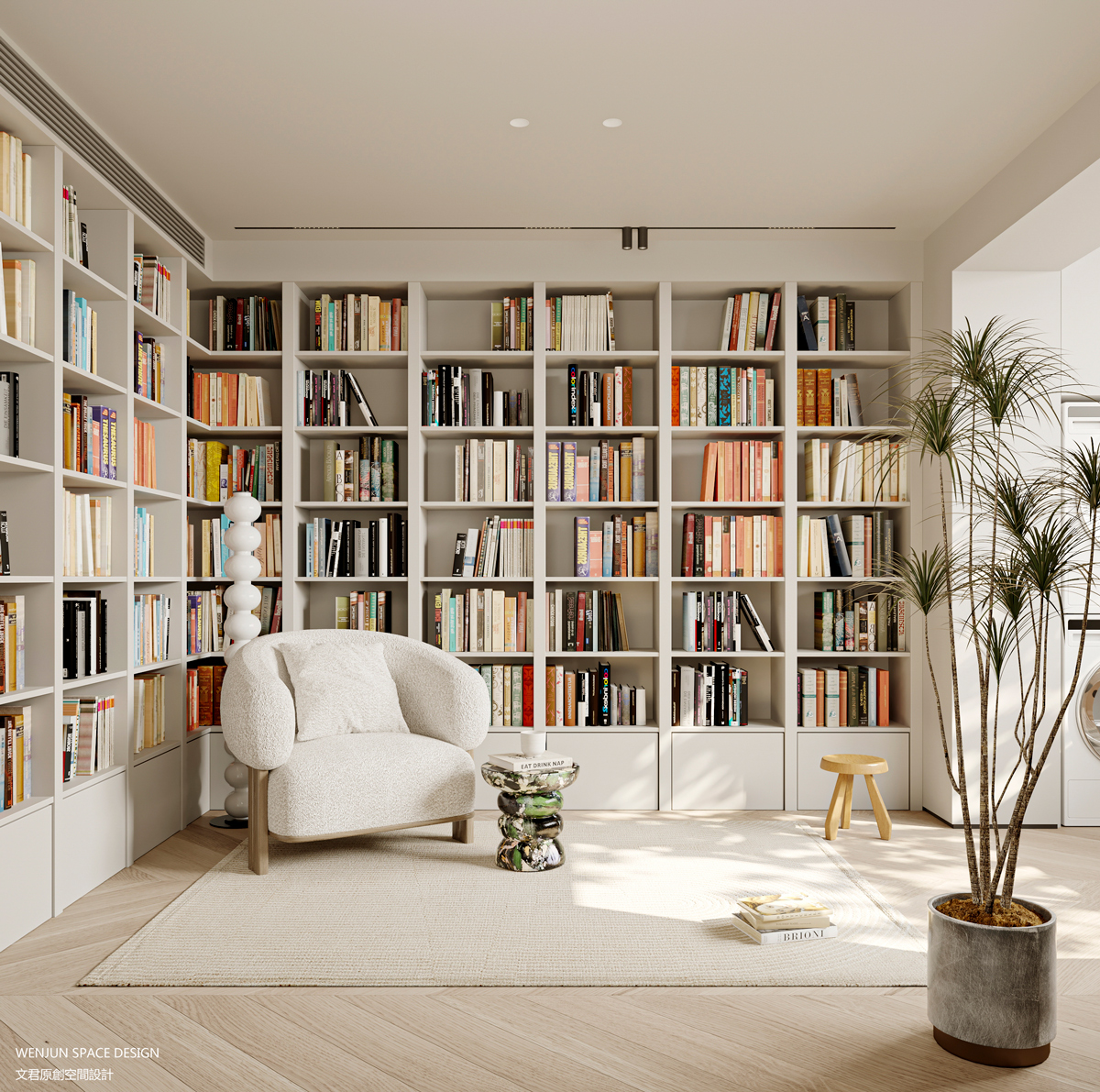 将客厅做成半开放式书房,享受小型图书馆的氛围。