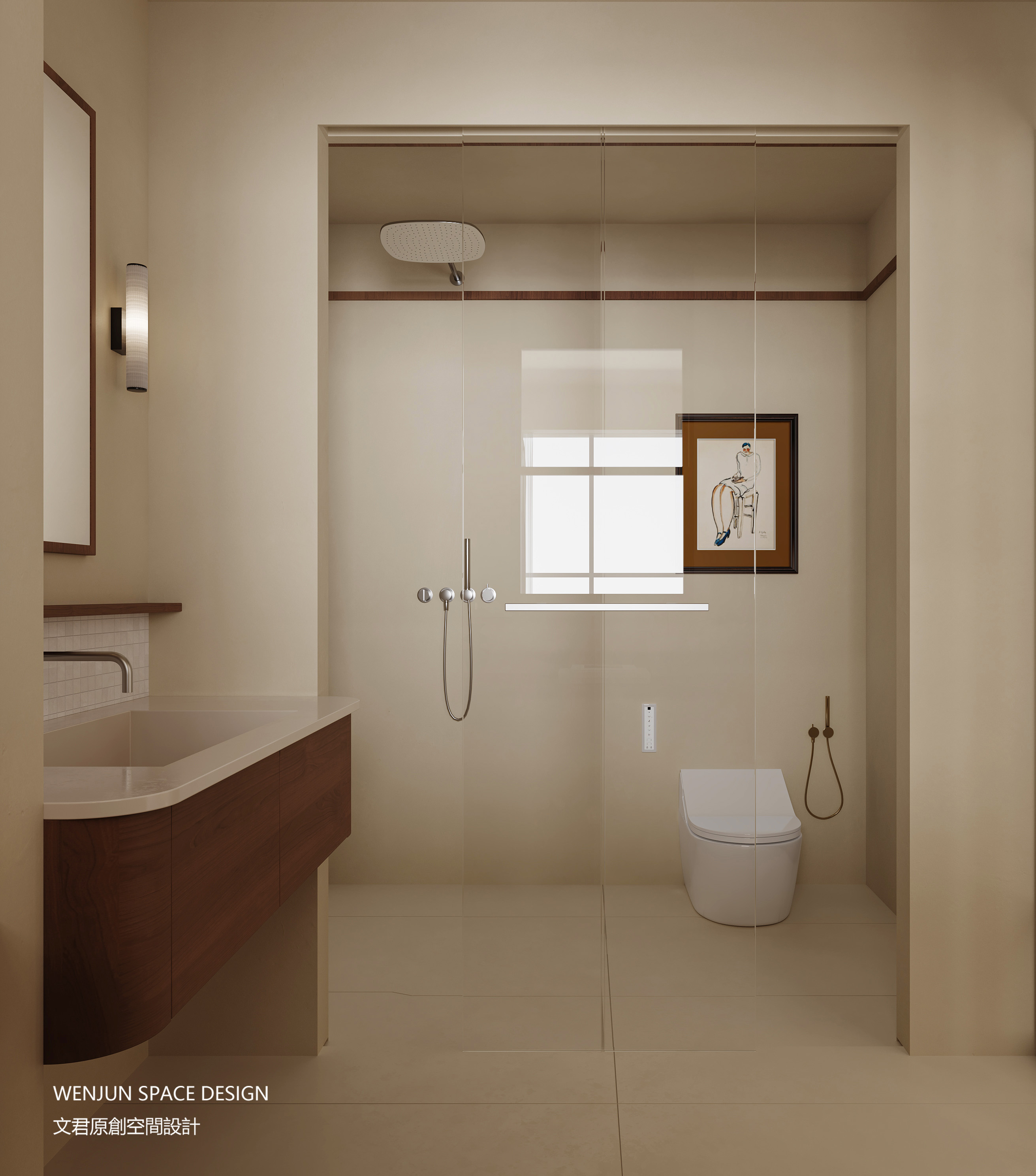 主色调不超过2个,用挂画颜色进行点缀,主卫亦是如此。高级感蔓延在各个角落。