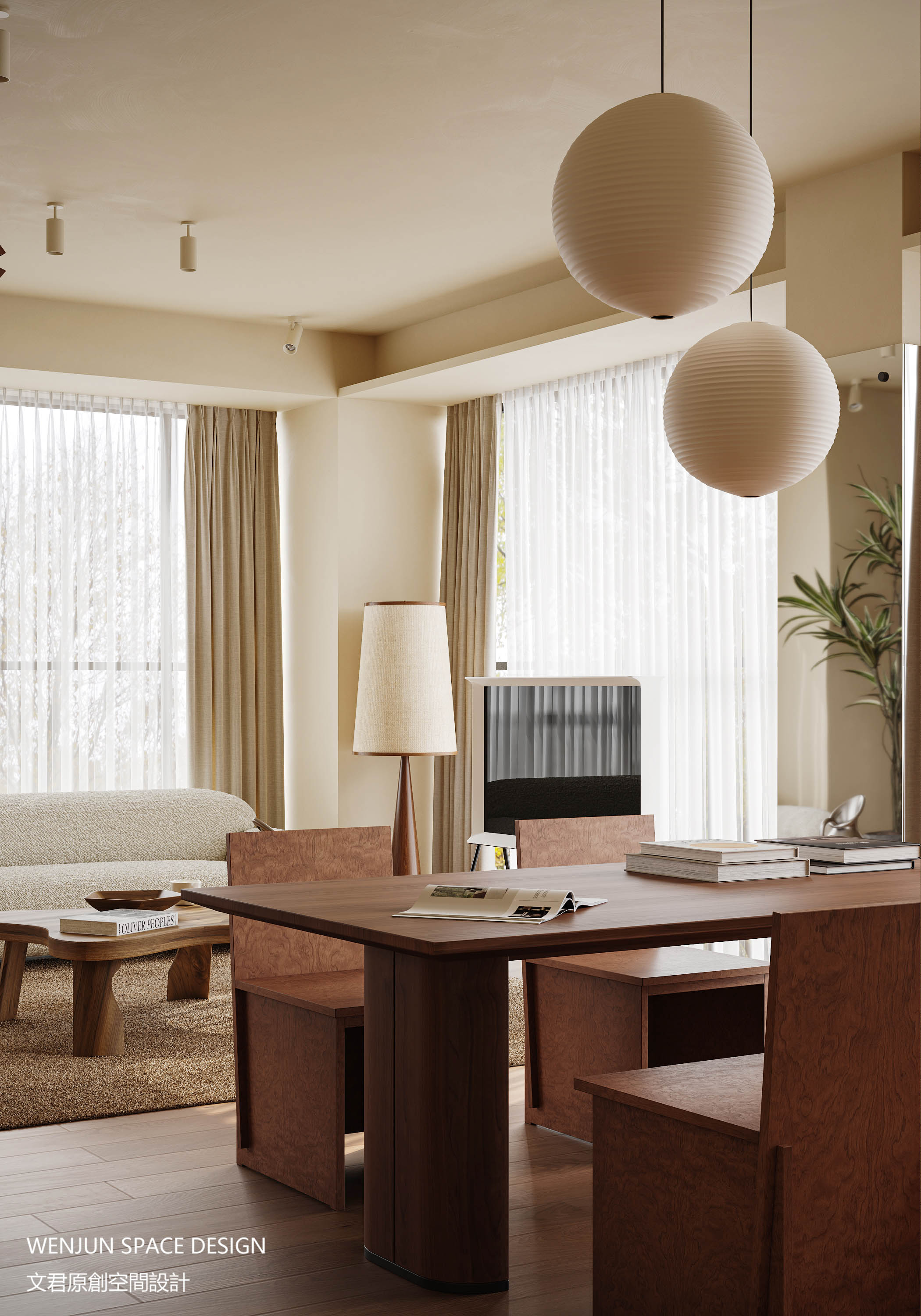 客厅、餐厅、厨房、多功能室这四个空间以开放式和半开放为主,和而不同,动线自由,十分有趣。不论是诗酒花茶,还是吟诗作赋,全都能在这里实现。