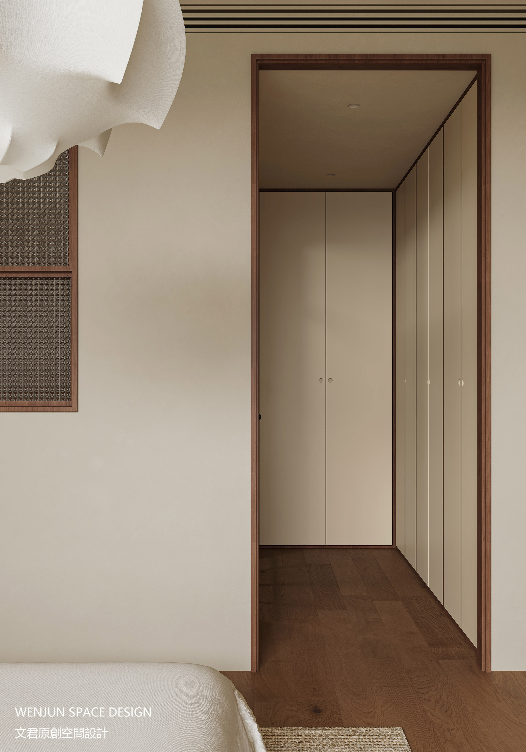 主卧延续全屋主色调,通过空间解构,成全了一个衣帽间与卫生间并存的套房。